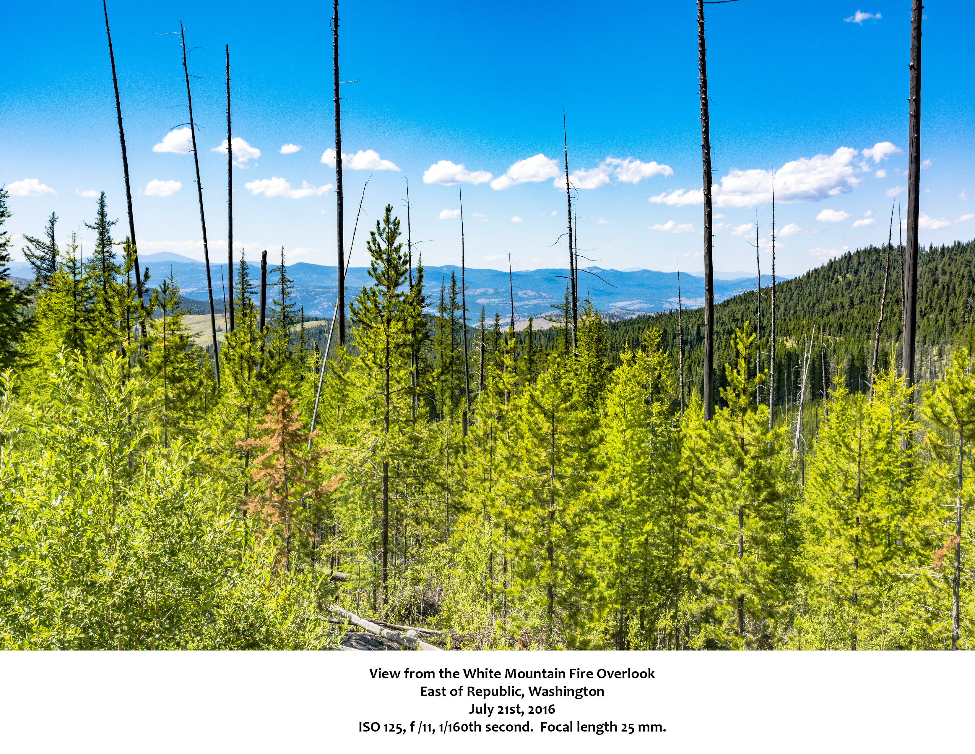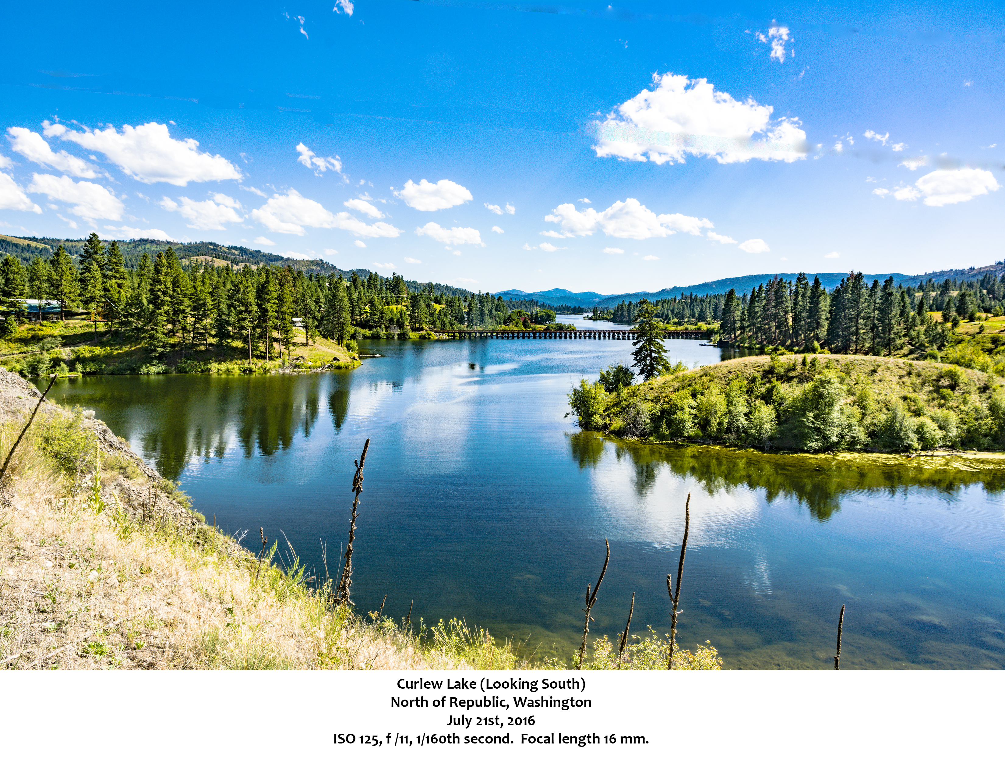 On July 21st, 2016, I spent a day driving around northern Ferry County. I entered the County by crossing the Columbia at Kettle Falls on Washington Highway 20. I proceeded west, crossing Sherman Pass and stopped in Republic. After photographing the Court House and several other buildings, I continued west on 20 to the Okanogan County line where I captured the Ferry County sign. Heading back toward Republic, I turned north on Swamp Creek Road which led me to Curlew Lake Road.