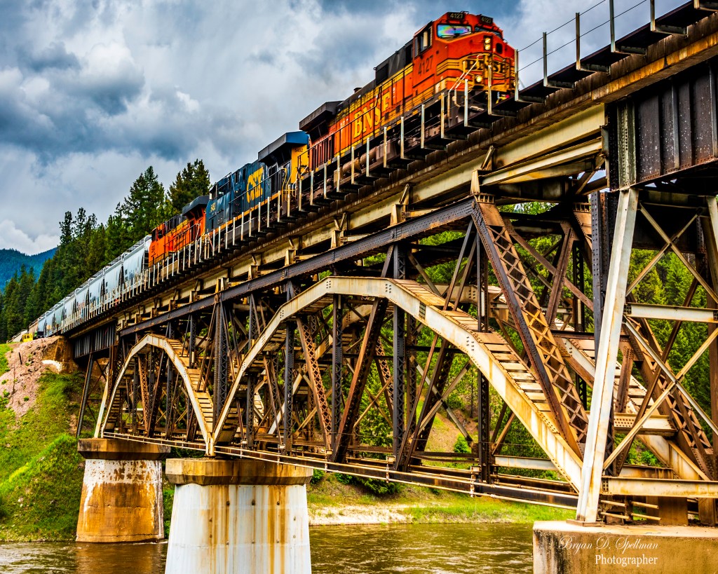 Burlington Northern Santa Fe caught in the scenic northern Rockies
