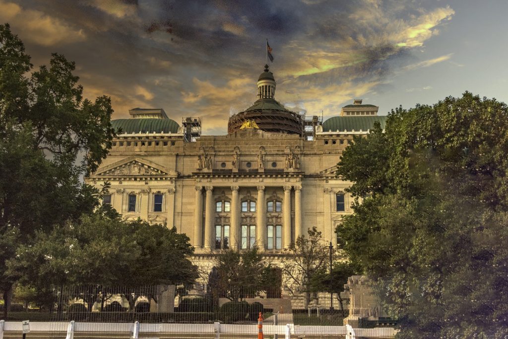 I’ve driven through Indianapolis many times without ever getting off the Interstate. This time we found our way to the capitol building, only to find that it is being renovated with heavy equipment and scaffolding everywhere. I took several shots and am now working with Photoshop to remove all those pesky distractions. Here is a work in progress.